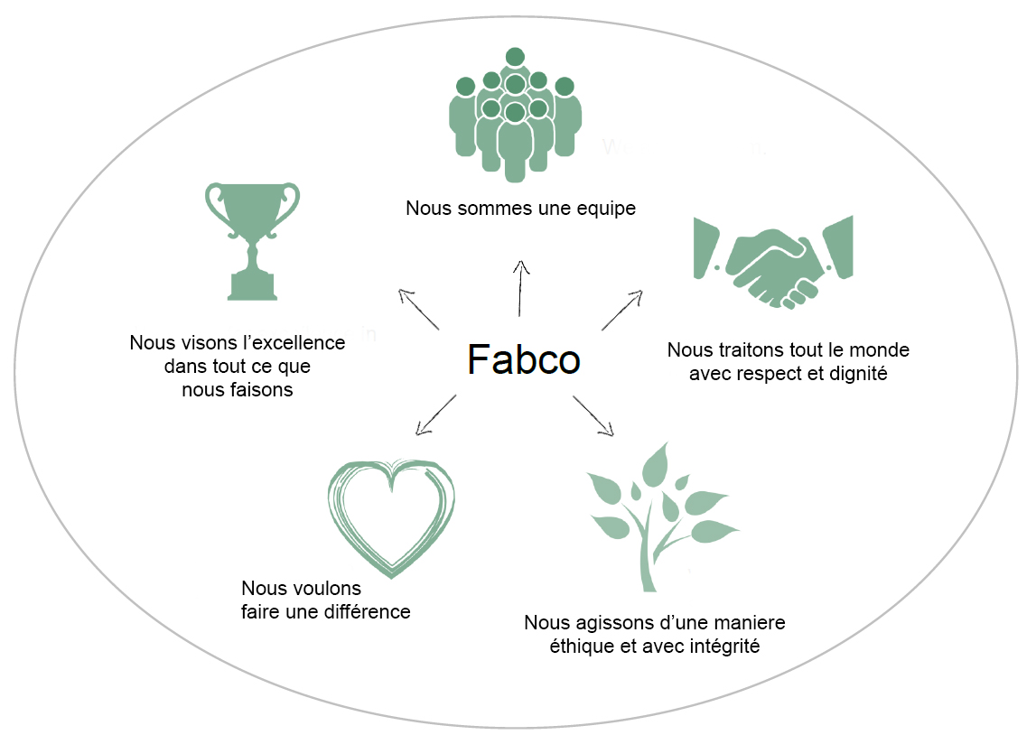 Dans notre travail et comportement quotidien nous vivons selon cinq valeurs clés. Tous sont fondamentaux a nous aider a atteindre nos objectifs.